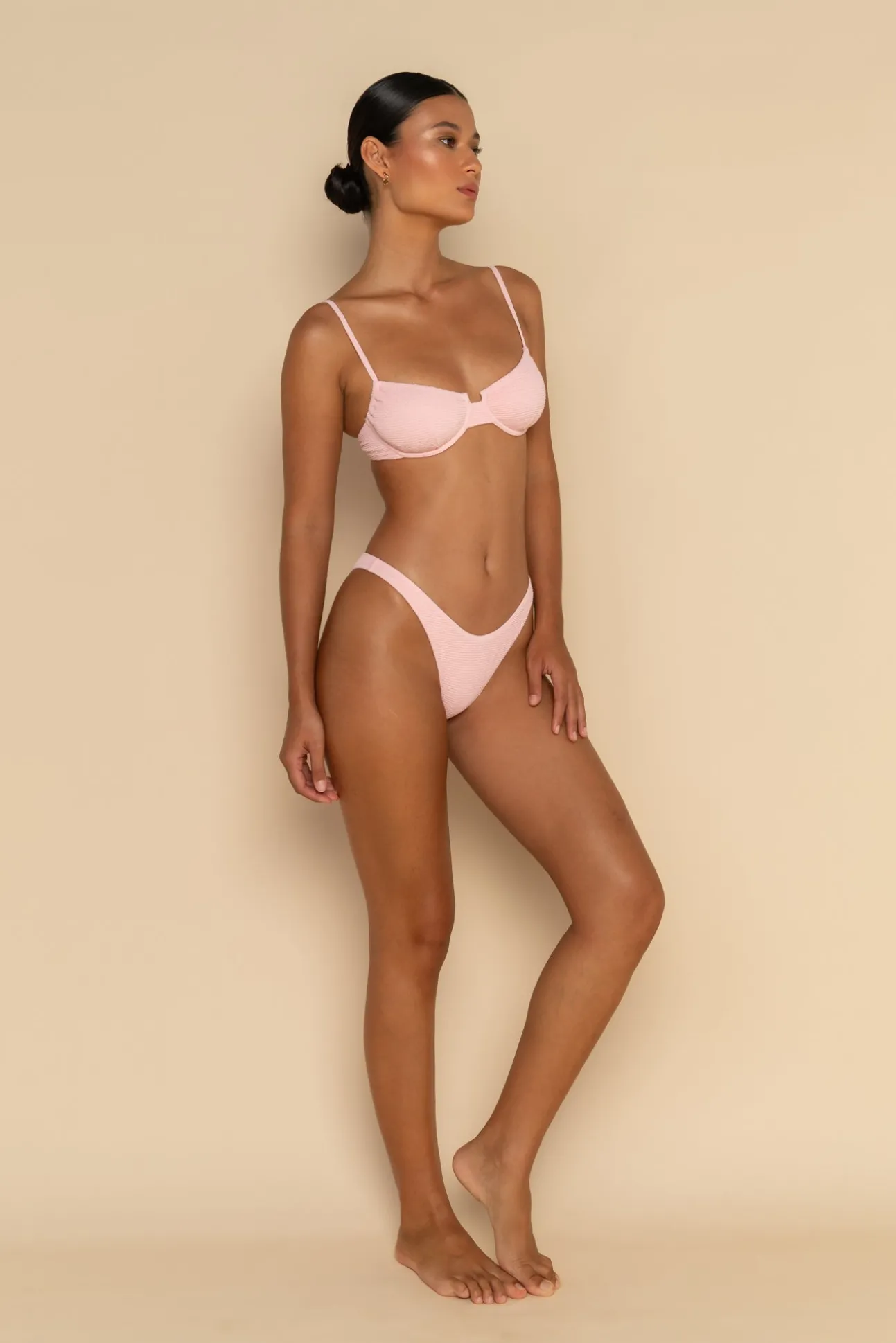 The Max bottom sports a curved waistband and is designed to be worn on the hip bones. These bottoms are the perfect design if you are after a cheekier look, with medium back coverage. Pair with the Mae Bra cup or Freya Top.